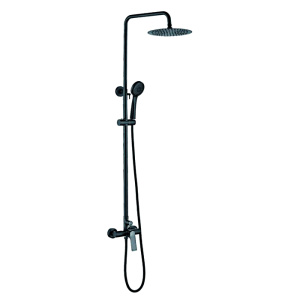Система душевая (черный, смеситель, душ.стойка, верх.душ, душ.лейка, душ.шл., держ. душ.лейки)