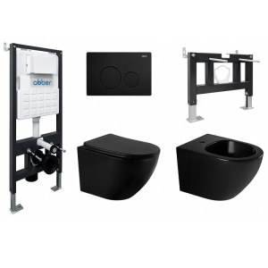 Комплект инсталляция с унитазом Abber Bequem с клавишей черная матовый (AC1100T-AC0105-AC0120MB)
