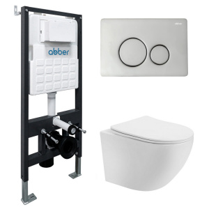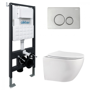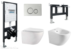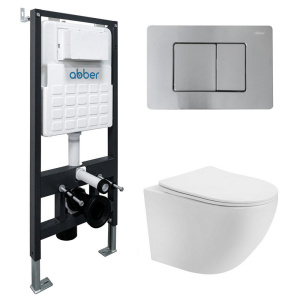 Комплект инсталляция с унитазом и биде Abber с клавишей хром (AC1100-AC0105-AC0120-AC1150-AC0101P)