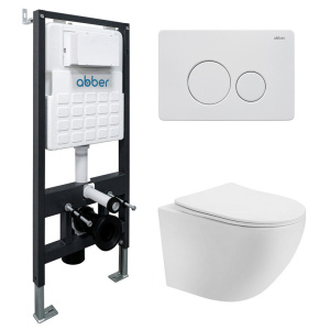 Комплект инсталляция с унитазом Abber Bequem с клавишей белый матовый (AC1100T-AC0105-AC0120MW)