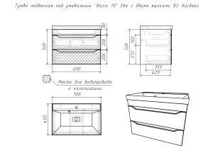 Тумба подвесная под умывальник Bazis 70 Веста с двумя ящиками В2 Айсберг Домино (DV5916T)
