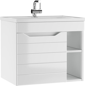 Тумба подвесная под умывальник Bazis 60 Ева с одним ящиком В1 Айсберг Домино (DA5901T)