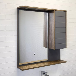 Шкаф зеркальный Comforty Кемер 750x160x800 с подсветкой дуб темно-коричневый (00-00014147)