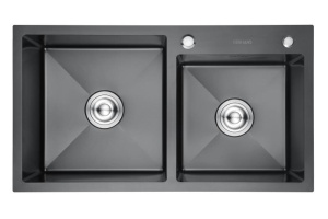 Мойка для кухни врезная двойная Gerhans 78x43x22 графит нерж. сталь 3 мм сифон (K37843B-S)