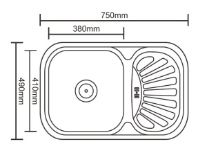 Мойка врезная Ledeme 490x180 (0,8мм) выпуск 3 1/2" матовая (L74949)