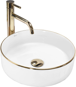 Раковина накладная Rea Belinda 46,5x33 белый с золотом (REA-U8736)