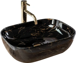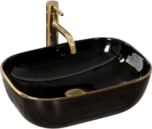 Раковина накладная Rea Belinda 46,5x33 чёрный/золото (REA-U8796)