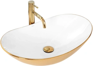 Раковина накладная Rea Royal 62,5x36 белый/золото (REA-U7808)