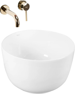Раковина накладная Rea Sofia 41x34,5 белый с золотом (REA-U3287)