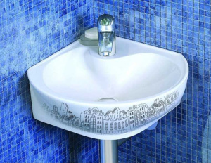 Раковина детская угловая Оскольская керамика Радуга 350х350х140 декор город