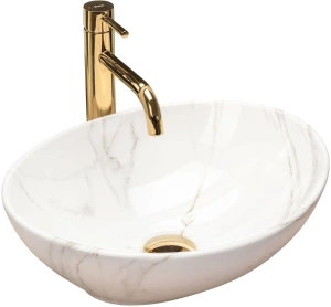 Раковина накладная Rea Belinda 46,5x33 белый с золотом (REA-U8736)