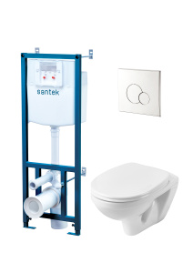 Комплект инсталляция с унитазом Santek Бореаль с сиденьем микролифт и белой кнопкой (1.WH30.2.464)