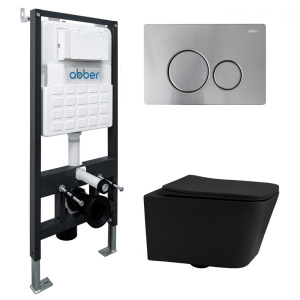 Комплект инсталляция с унитазом Abber Bequem с клавишей черная матовый (AC1100T-AC0105-AC0121MB)