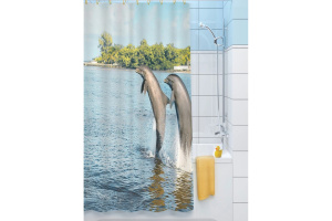 Шторка для ванны текстильная Melodia 180х200 см Весёлые дельфины (MZ-112)