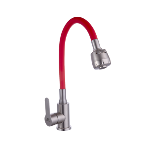 Смеситель для кухни Fashun с гибким изливом сатин/красный (A54801+N7358)