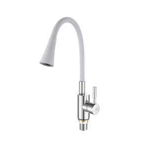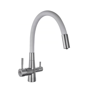 Смеситель для кухни Fashun с гибким изливом сатин/белый (A54112-8)