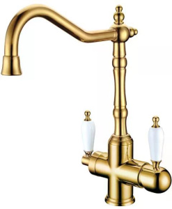 Смеситель для кухни Boheme Kitchen Золотой с краном для питьевой воды (112)