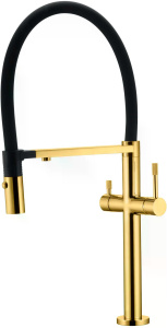 Смеситель для кухни Boheme Kitchen Золотой с краном для питьевой воды с гибким изливом (115-G)