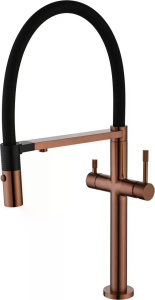 Смеситель для кухни Boheme Kitchen Медный с краном для питьевой воды с гибким изливом (115-CB)