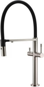 Смеситель для кухни Boheme Kitchen Никель с краном для питьевой воды с гибким изливом (115-NB)