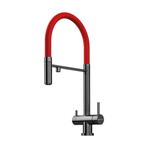 Смеситель для кухни Omoikiri Kanto-PVD-GM вороненая сталь/красный, гибкий шланг (4994013)