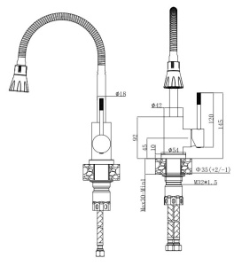 Смеситель для кухни Melodia Perfetto нерж.ст., регулируемый по высоте излив (MDV30202ss)