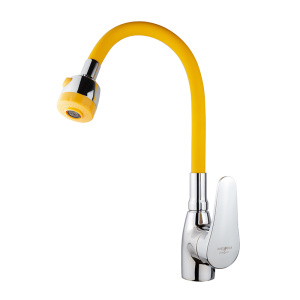 Смеситель для кухни Melodia Ostessa гибкий излив с лейкой 2 режима, жёлтый-хром (MDV40616Yellow)