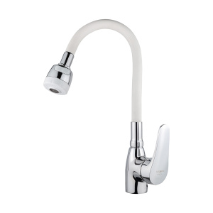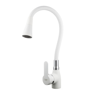 Смеситель для кухни Melodia Ostessa гибкий излив колокольчик 2 режима, белый (MDV40617White)