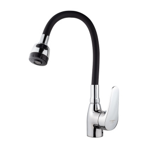 Смеситель для кухни Melodia Ostessa Black высокий излив без подводки, хром (MDV35116_bk)