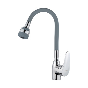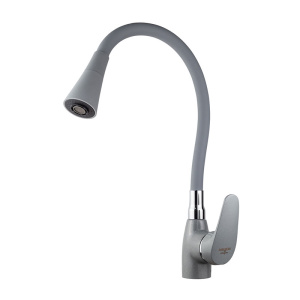 Смеситель для кухни Melodia Ostessa гибкий излив с лейкой колокольчик 2 режима серый (MDV40617Gray)