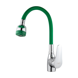 Смеситель для кухни Melodia Ostessa гибкий излив с лейкой 2 режима, зеленый-хром (MDV40616Green)