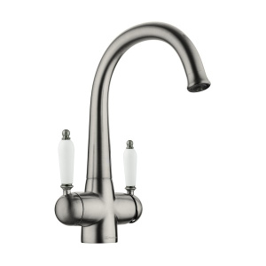 Смеситель для кухни Omoikiri Hotaru-IN-WH цвет нержавеющая сталь/белые вставки на ручках (4994050)
