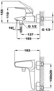 Смеситель для ванны и душа E.C.A Luna (102102450EX)