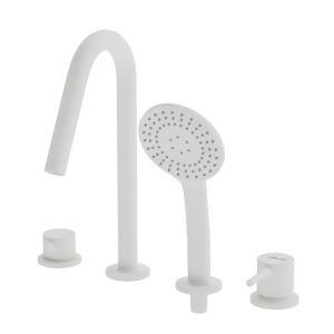 Смеситель на борт ванны Cezares Leaf врезной, на 4 отверстия, белый матовый (LEAF-BVDM4-L-BIO)