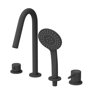 Смеситель на борт ванны Cezares Leaf врезной, на 4 отверстия, черный матовый (LEAF-BVDM4-L-NOP)