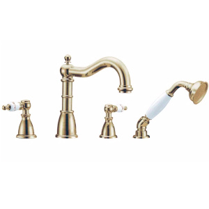 Смеситель на борт ванны Boheme с душевым гарнитуром белый / золото (395)