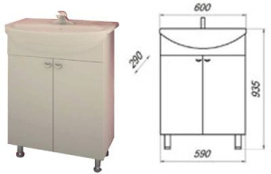 Тумба напольная 1Marka Lira 390*220*850 с раковиной, белый (У85920)