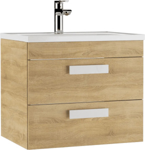 Тумба подвесная под умывальник Bazis 60 Ева с одним ящиком В1 Дуб Вотан Айсберг Домино (DA5906T)
