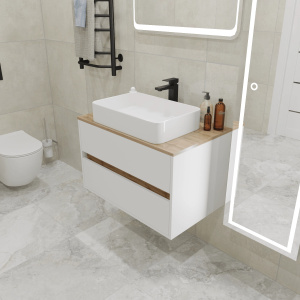 Тумба подвесная 1Marka Veil 800x500x500 белый/дуб ватан (Ц0000035553)