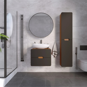 Тумба подвесная 1Marka Vortex 600x500x50 (орех ноче тортона/монолит найт) (Ц0000033058)